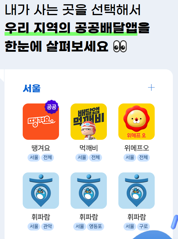 서울시 주요 공공배달앱(한눈에 비교)