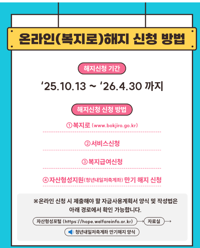 📋 청년내일저축계좌 만기 해지 신청 방법