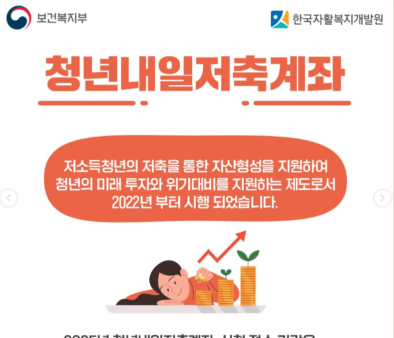 ‘청년내일저축계좌’는 근로 또는 사업소득이 있는 기준 중위소득 100% 이하 청년을 대상으로 한 자산형성지원 제도입니다. 매월 10만~50만 원을 저축하면 정부가 월 최대 30만 원을 추가로 적립해줍니다.